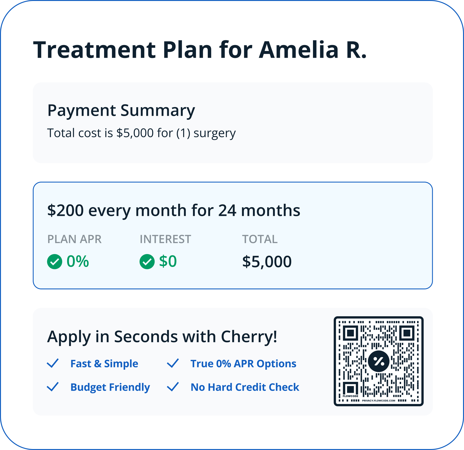 This makes Cherry a simpler, more transparent option for healthcare payment plans with less confusion at checkout.